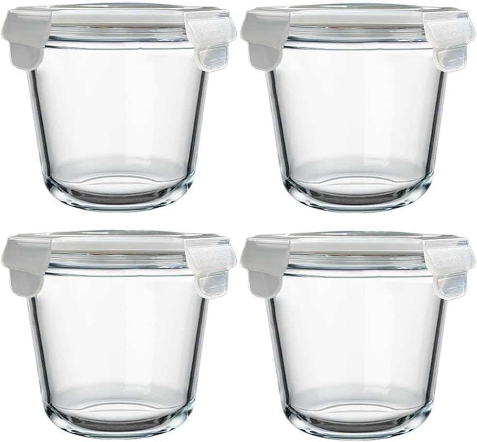 24 Oz Glass Food Storage Container, 3 Cup Glass Soup Container with Airtight Lids, Round Meal Prep Containers, Leakproof Soup Storage Container, DishwasherMicrowave & Freezer Safe (4 Pack)