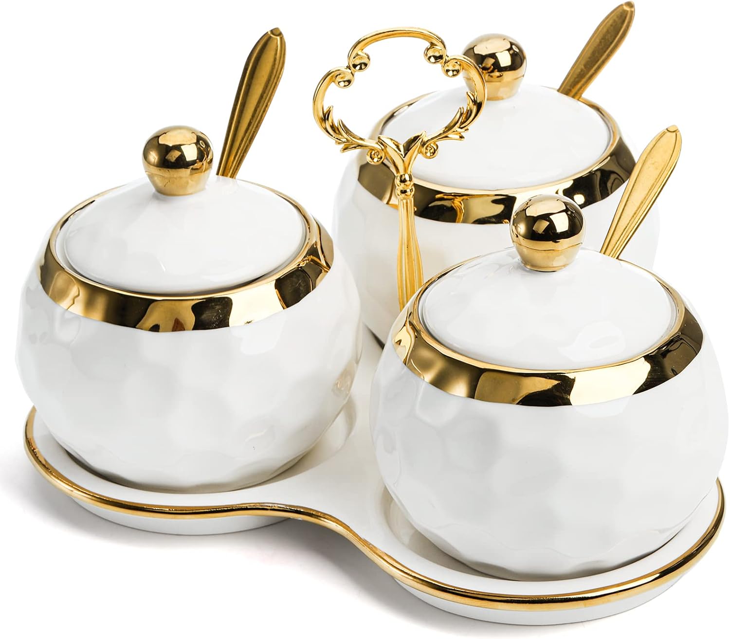 - Nice Gift: The superior Spice Storage Canisters are a great choice to be a gift for your loved one. The glamorous porcelain sugar and creamer sets with exquisite appearance will complement on any home decor.